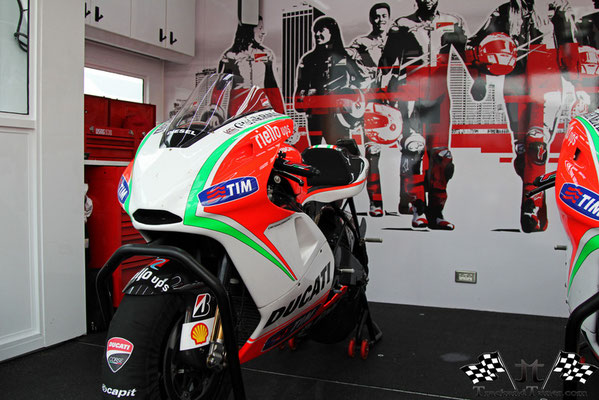 Next to Ducati home, were the two seater Desmocedici’s from 2006. With their two riders Baittaini and Randy Mamola.