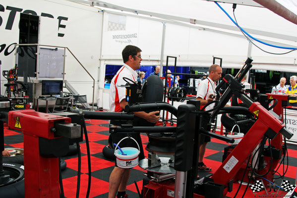 Balancing is all done by hand and all tires are free of charge. Bridgestone uses the technology to improve road tires. Bringing the race tires to the roads.