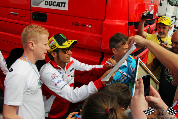 Lorenzo also seemed very relaxed before practice. Being in the paddock confirms the still hugely popular of Valentino Rossi. Most people stand by to see Rossi and to get an autograph of Rossi. But this is not just because of his World titles but as he showed he really takes his time for his fans, even after a bad qualification, this making him such a popular rider.