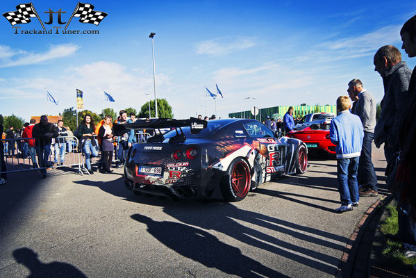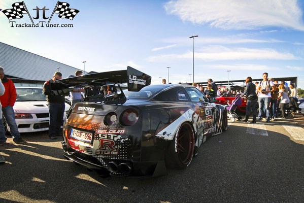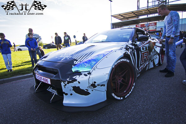The two showstoppers during this meet where the Lamborghini Aventador LP-988 by DMC. With a full dry carbon fiber bodykit, DMC wheels and wrapped in a red color this car look brutal. It might be a bit extreme in the front, but the wing, the hood and roof scoop finished the look perfectly. Another extreme car was the Liberty Walk Nissan GTR by Belgium GTR store. Belgium GTR store specializes in Nissan GTR parts and maintenance and this is there show car, exploiting what is possible. Fitted with massive concave wheels, full Liberty Walk wide body kit including the mega wing, fender flares and front splitter, new HKS turbos capable of producing 1000HP but set to 700HP and an innotech race exhaust. This car is also lowered on air suspension making it possible to drop to the ground for a stance look and lifting the entire car for the impossible Belgium speed bumps.