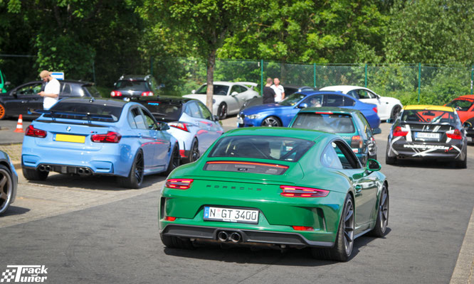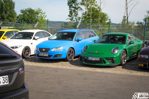 I love colors and seeing the dark green Porsche 991 GT3 touring was a great choice. However the rarest car on the parking might be the Ford Focus RS500 in matt black.