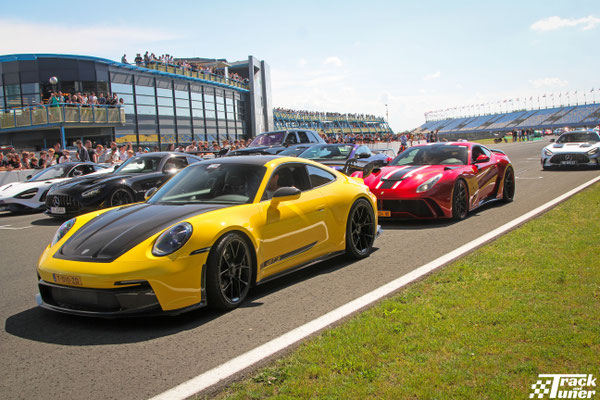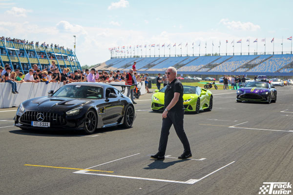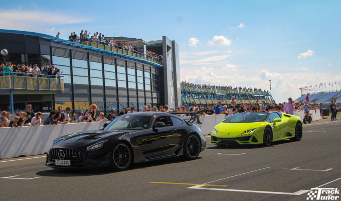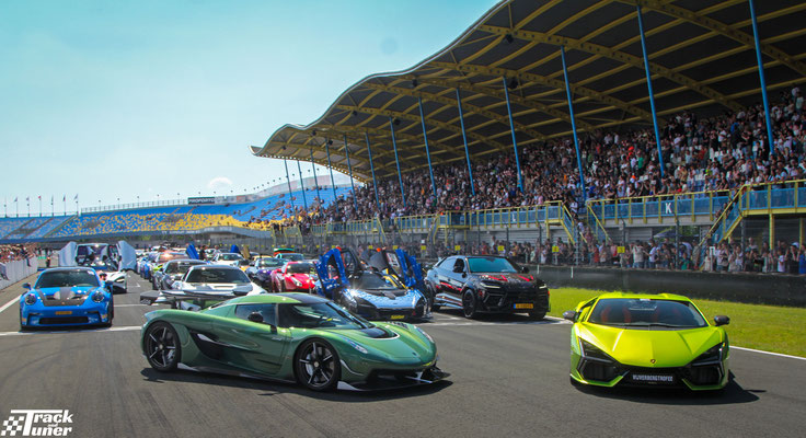 The big Hypercars, like the Koenigsegg Jesko, the Revuelto, the Mclaren GTR and the Urus Mansory from Enzo Knol, take center stage at the main straight.
